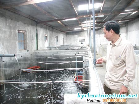Đối với hệ thống nước trong – tuần hoàn, từ ngày thứ 4 sau khi ươm ấu trùng, nên cho nước luân chuyển giữa bể ươm và bể lọc sinh học. Tỷ lệ nước luân chuyển khoảng 100 – 400% thể tích bể ươm/ngày: